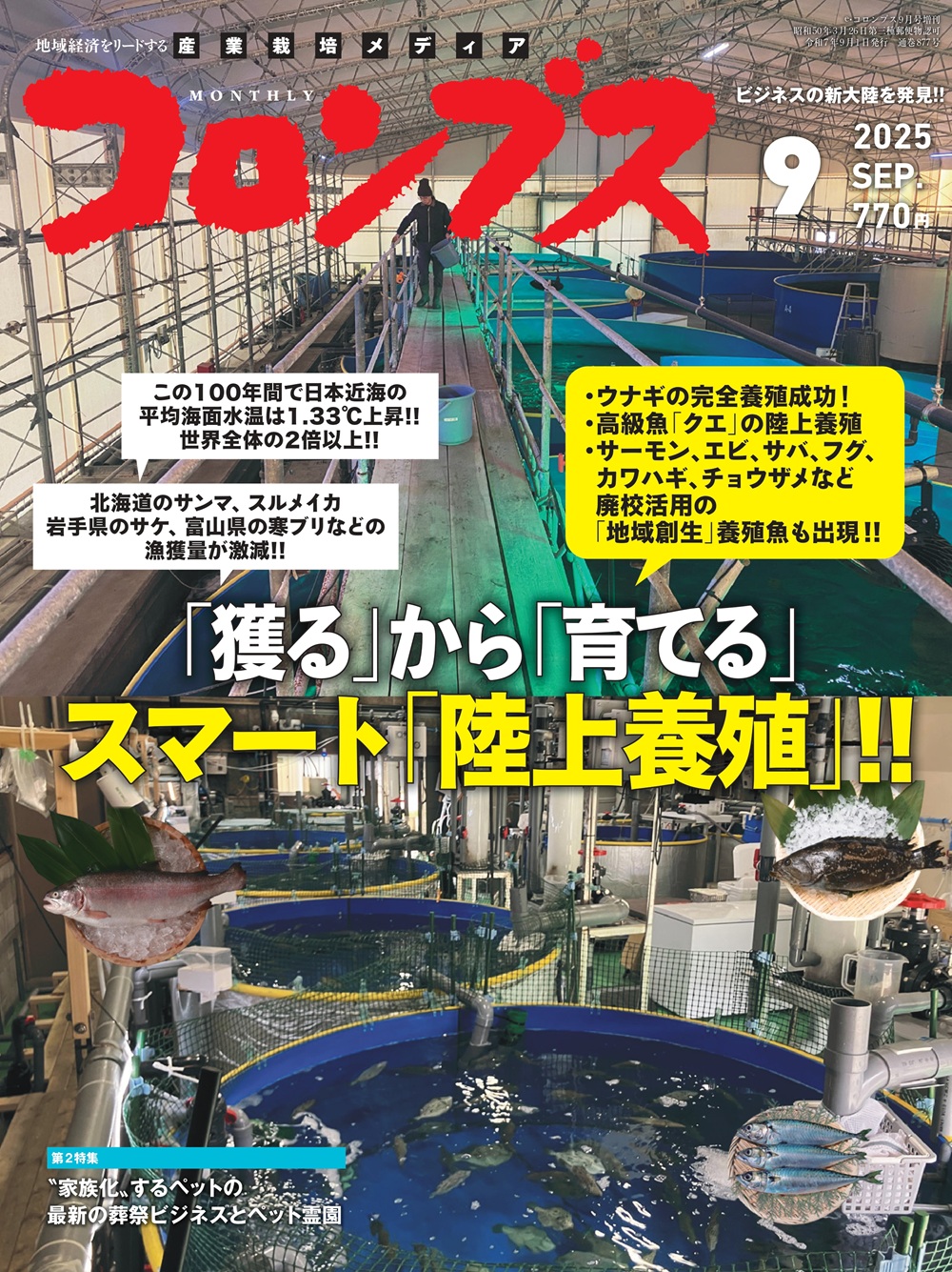日本近海の気候変動や外国船の漁獲量の増加などによる不漁、そして漁業従事者の減少などによって担い手不足、人手不足に。このままでは「水産王国ニッポン」はカンバン倒れになってしまう。そこでガ然、注目されてきたのが「育てる漁業」の「陸上養殖」だ。これを商機と見て異業種や大手企業、外資、スタートアップの新規参入が相次ぎ、毎年450校ほどの廃校プールを活用した町おこし、村おこしの養殖も広がってきている。だがその一方で、いかに陸上養殖業の収益率を向上させ、持続可能なビジネスとするかが課題に。そこで今号では、専門家に陸上養殖ビジネスの最新動向やポイントを聞くとともに、実際に陸上養殖ビジネスに挑戦する企業の事例を紹介したい。