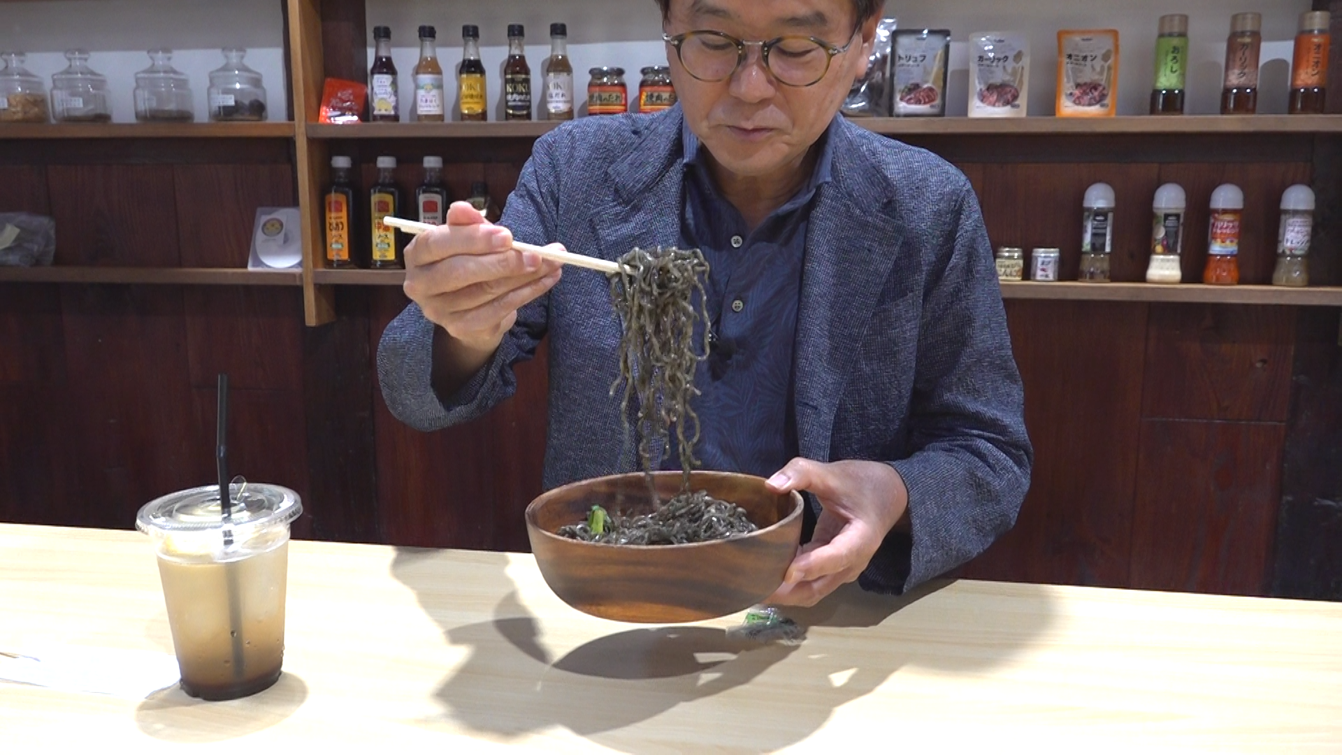 というわけで山本さんは同社の工場敷地内にあるレストラン「森のキッチン」で販売している東村山黒焼そばを試食してみることに。その焼そばを見てあらためて黒々とした姿にビックリ仰天。が、味は天下一品、「イカ墨の臭みやしつこさはなく実においしい」とその独特な風味を堪能していた。