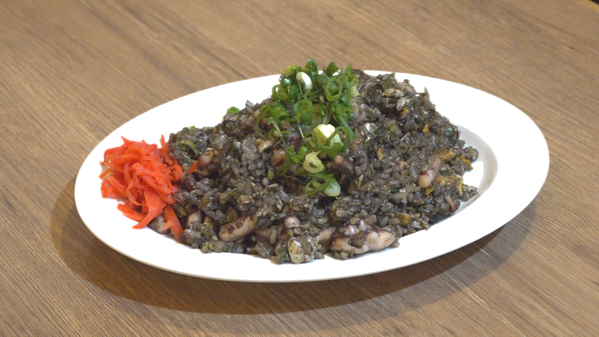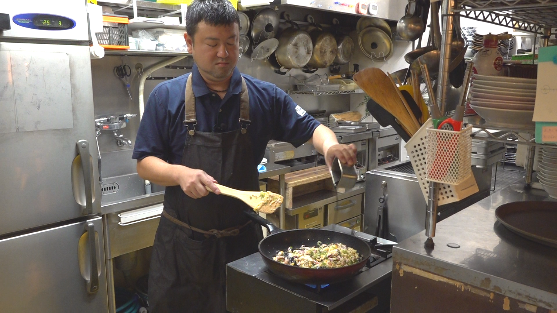 ならば、と山本さんも「昼からひとやすみ」のノレンをくぐり、ウワサの「だいじょぶだぁチャーハン」を注文した。店長の梅津光輔さんにレシピ開発のエピソードなどを聞きながらアッという間に完食。「これはひとことでいうと大人のチャーハン‼ イカスミのコクとゲソの香ばしさがお酒によく合いそう」という山本さんの感想に「まさにお酒の後のシメに食べる方が多いですよ」と梅津さん。